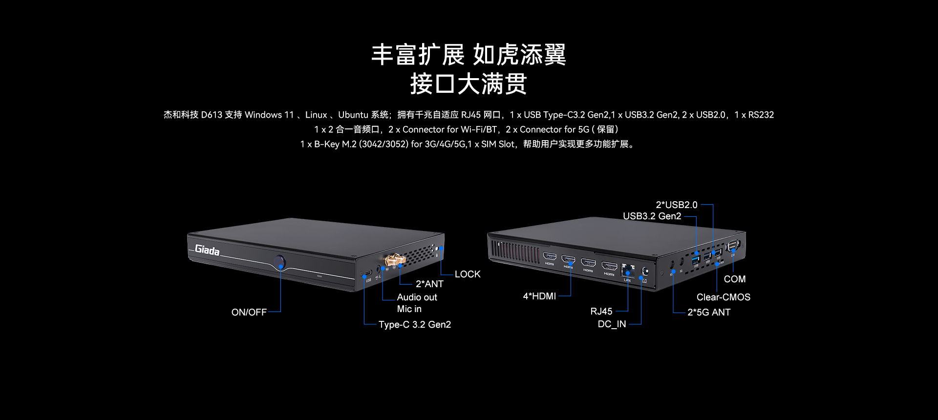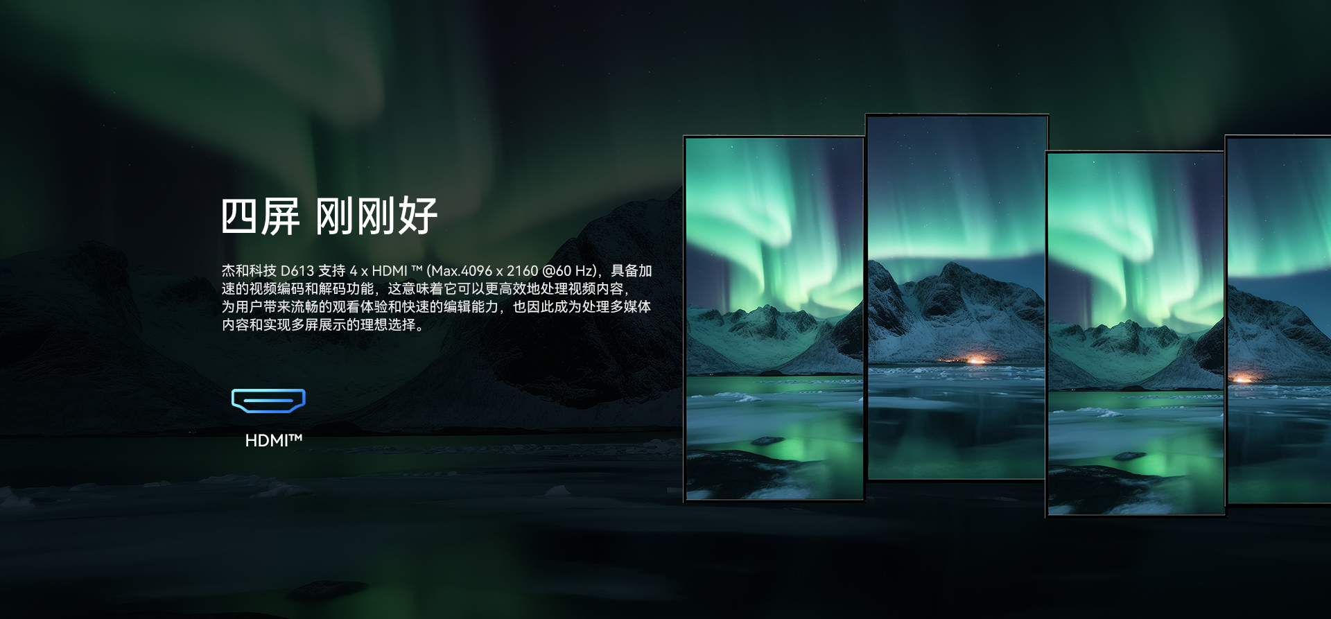 提供4个HDMI显示接口输出,支持4K显示